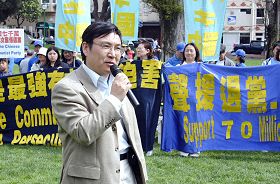 ![]() 旧金山退党服务中心代表马有志博士在发言 |