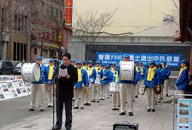 ![]() 法轮功天国乐团助阵,庆祝七千万中国民众精神觉醒。 |