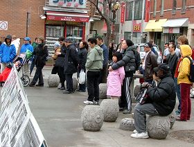 历时两个小时的集会中,不同肤色、不同种族的人们停下脚步,聆听与会者的发言和观看揭露中共残暴镇压中国人民荼毒生灵的展板。有的在阅读揭露中共残害中国人民和迫害法轮功学员的真相传单。一法裔人还专门找到能说法语的与会者,了解集会的内容与目的和正在中国发生的相关事件的情况。
