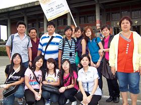 来自马来西亚的观众在国父纪念馆前留影