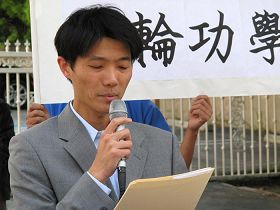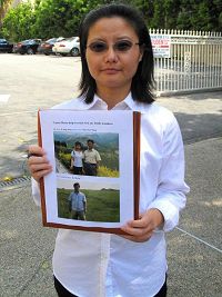 ![]() 法轮功学员、加州大学洛杉矶分校(UCLA)牙科中心助理主任张轶渊呼吁营救母亲李耀华和妹妹张轶博。 |