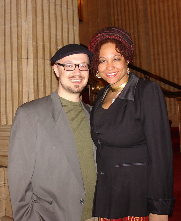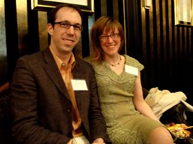 ![]() 芝加哥公共广播电台部门主任杰夫.邓拉普和太太在贵宾招待会上。 |