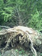 龙卷风好象长眼睛似的,遇到大法弟子家的松树地(自己家种植的),龙卷风腾空而起越过了大法弟子家的地,又落到地面的另一家松树地上,树连根拔起;接连很多庄稼玉米地、黄豆地都遭到袭击,被龙卷风搅的一个苗都没有了,地面象是被笤扫扫的一样干净,大土块、树干、树叶、玉米都卷到上空,不知落到何处。遇到树上挂有“法轮大法好”的标语风就立刻转向。