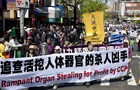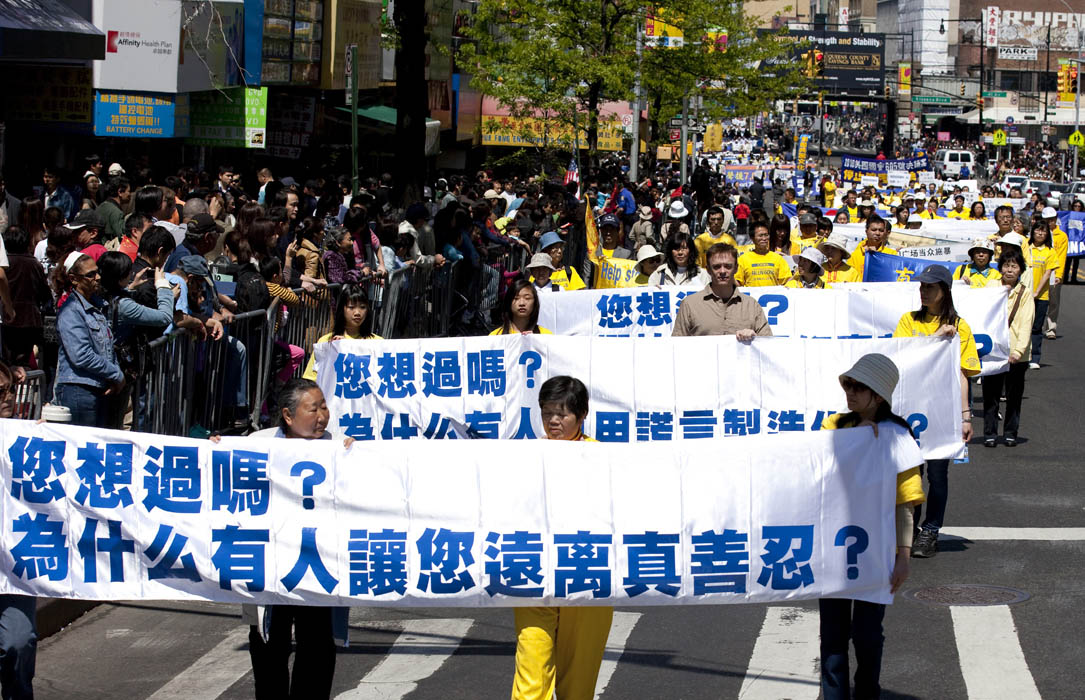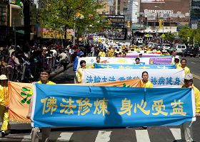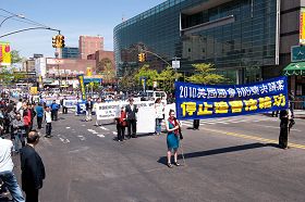 ![]() 法轮功学员纽约法拉盛大游行,纪念四•二五,传播真相 |