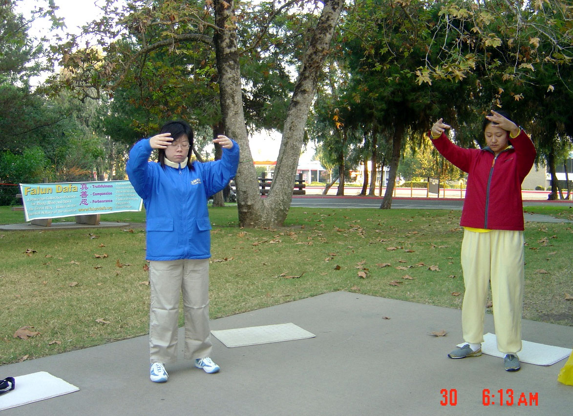 “学员很多,但一点都不会乱,当时场面特别平和,特别安静,连声音都没有,没有口号也没有标语,特别祥和的一个氛围,我们什么都没多想。”她还说:“站在我们这条马路边上的一个警察才二十几岁,他们的任务是来维护秩序的,看到我们学员男女老少多大年龄的都有,都是这么祥和,都面带笑容,他就不好意思了,站着站着,都不好意思看着我们了,就背对着我们。后来我跟他讲法轮功的实际情况,他才知道原来是这么回事。后来,我亲眼看到,他丢在地上的烟头让学员给捡起来了,他觉得不好意思,表情很腼腆的。”