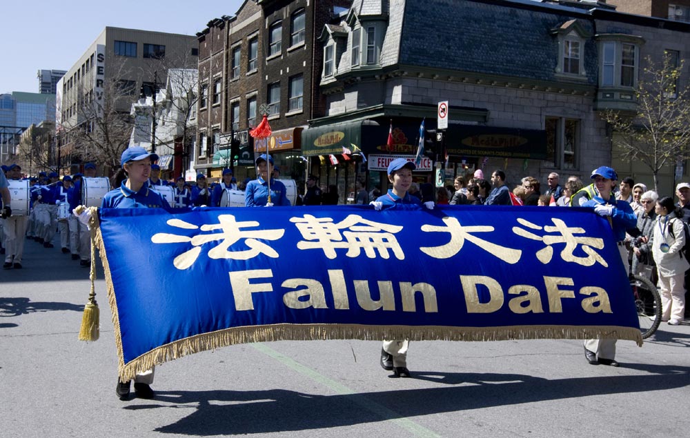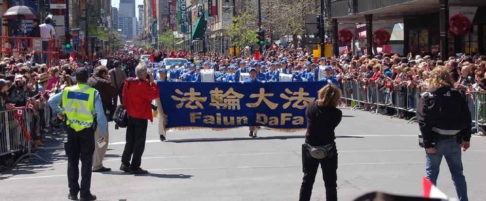 蒙特利尔天国乐团活动协调人介绍,在游行前两天我们接到组委会提出的要求,游行期间不能打出“法轮大法”的横幅。我们马上回复组委会,“法轮大法”横幅是我们乐团的一部份,不让打这个横幅,是对我们这个团体的歧视,我们就将不参加这次游行,同时保留法律诉讼权利。最后组委会决定可以打出“法轮大法”横幅。
