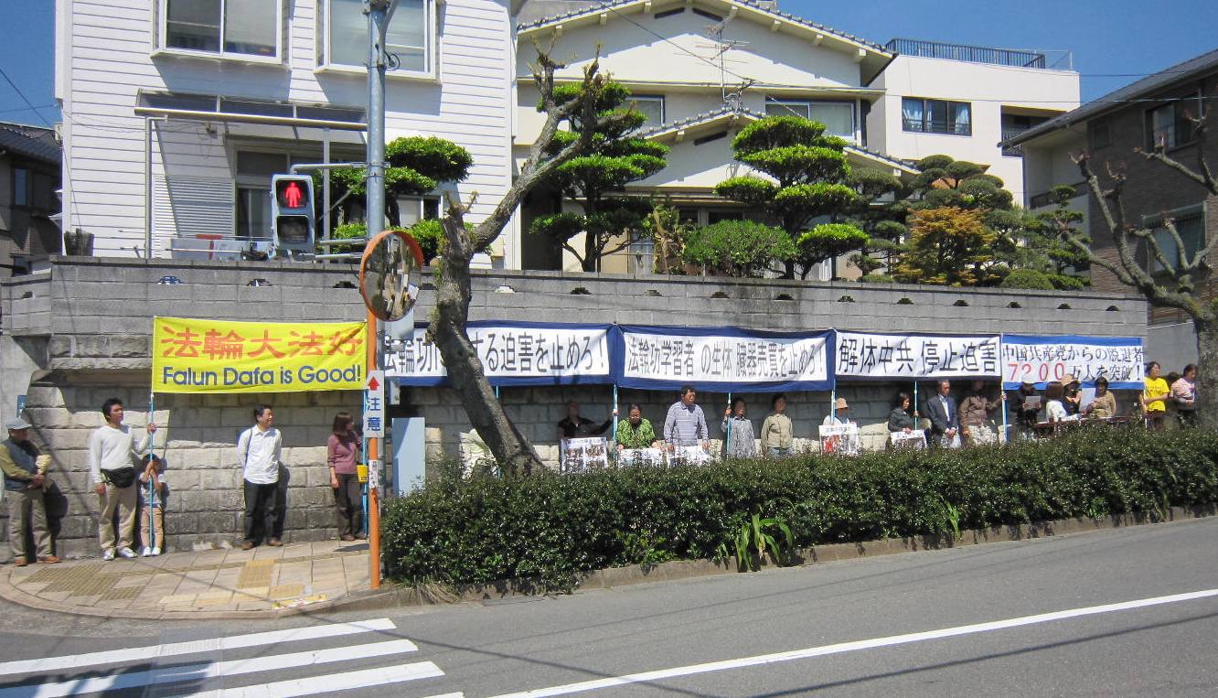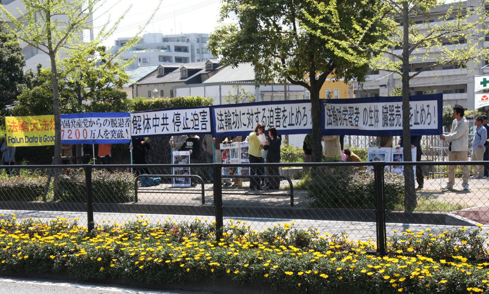 在福冈和长崎中领馆前的活动中,法轮功学员们分别用中文和日文宣读了关于“四.二五”的声明。声明中提到十一年前“四.二五”法轮功学员的和平理性抗争,和十一年来无数的法轮功学员在横遭严酷迫害的同时坚定维护信仰自由的权利,展现了巨大的勇气与慈悲。