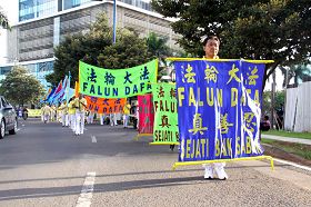 ![]() 法轮功学员进行了展示法轮功美好的游行 |