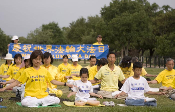 庆世界大法日 休士顿法轮功学员公园炼功(图)