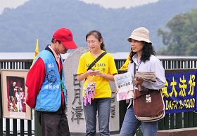 商家严小姐表示,她接触到许多到日月潭旅游、逛街的大陆游客,他们表示很喜欢法轮功,这些旅客都知道法轮功被中共迫害。