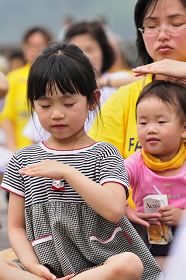 许多家庭是全家人都修炼,在会场上许多小朋友跟着父母在这里一起参与各种庆祝活动。在这儿,各种年龄层的人,不论是满头白发的老人家,或是仍在就学的小朋友,他们都是亲身体验法轮功的美好、殊胜。在母亲节前夕,他们想要利用这个活动告诉所有人:“法轮大法好!”