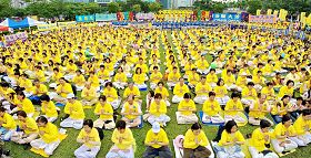 ![]() 一千多名法轮功学员,二零一零年五月九日下午齐聚在台北一零一大楼对面的信义广场,举办庆祝五一三世界法轮大法日活动 |