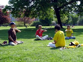 ![]() 一年四季,法轮功学员都坚持在国王公园炼功。 |