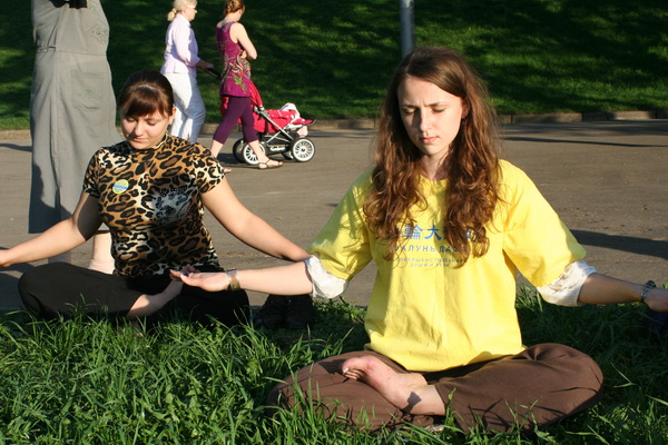 【明慧网二零一零年五月十五日】2010年5月13日那天,俄罗斯学员在中共驻俄罗斯大使馆前集体炼功、