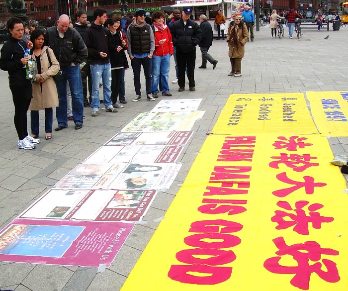 善良纯朴的丹麦人对法轮功的功法和“真、善、忍”的理念非常赞赏。一位丹麦人认真倾听了法轮功学员的介绍,并提出了有关修炼的问题,他当场表示要学习法轮功,并购买了一本丹麦文的《转法轮》。另一位年轻的丹麦女子认真阅读了真相图片,她来到学员鲍尔的面前希望得到更多的法轮功信息,并记下联系方式。