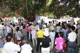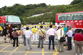 西子湾位于中山大学大门口,依山傍海,山上是著名的打狗英国领事馆,滨海的是壮阔的高雄港港口。适逢周末,游览车一辆一辆接踵而至,几乎都是来台观光的陆客。看着穿着写有“法轮大法好”黄色衣服的法轮功学员,祥和的炼功音乐四处回荡,“有这么多人在炼法轮功,太不可思议了!”大陆游客的表情惊愕不已,纷纷驻留观看,照相,录影。