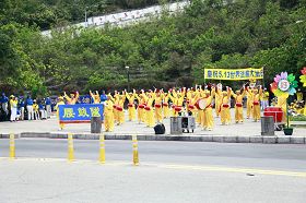 ![]() 高雄法轮功学员腰鼓队表演《法轮大法好》 |