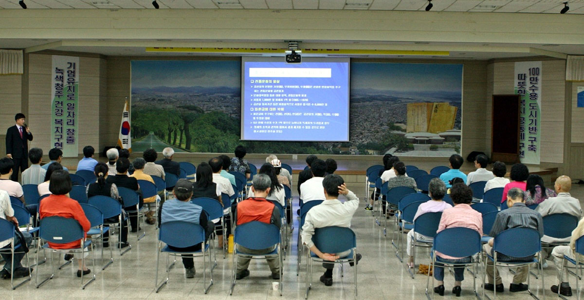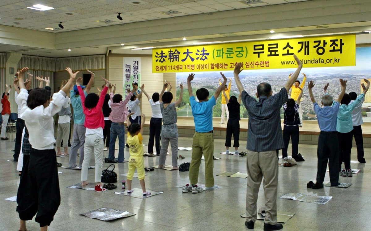 继大田之后,六月五日又在清州市兴德区厅举办了法轮大法介绍班。这是首次在清州举办介绍班,约有七十余人参加。这次活动也吸引了来自其它地区如尚州与天安市的民众,他们特意来学法轮功,参加者从五岁儿童至高中生、大学生、二十岁左右的年轻人、七十岁的老人等,年龄、性别、社会阶层分布广泛。