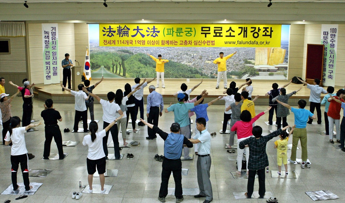二零一零年五月二十九日,约八十余人参加了在大田广域市平松青少年修炼院(青少年活动中心)举办的法轮大法介绍班。介绍班在祥和的氛围里,经二个小时,以“介绍法轮功”、“法轮功对于增进身体健康所起的效果”、“学炼法轮功炼功动作”等几个部份有序地向与会者进行讲解。