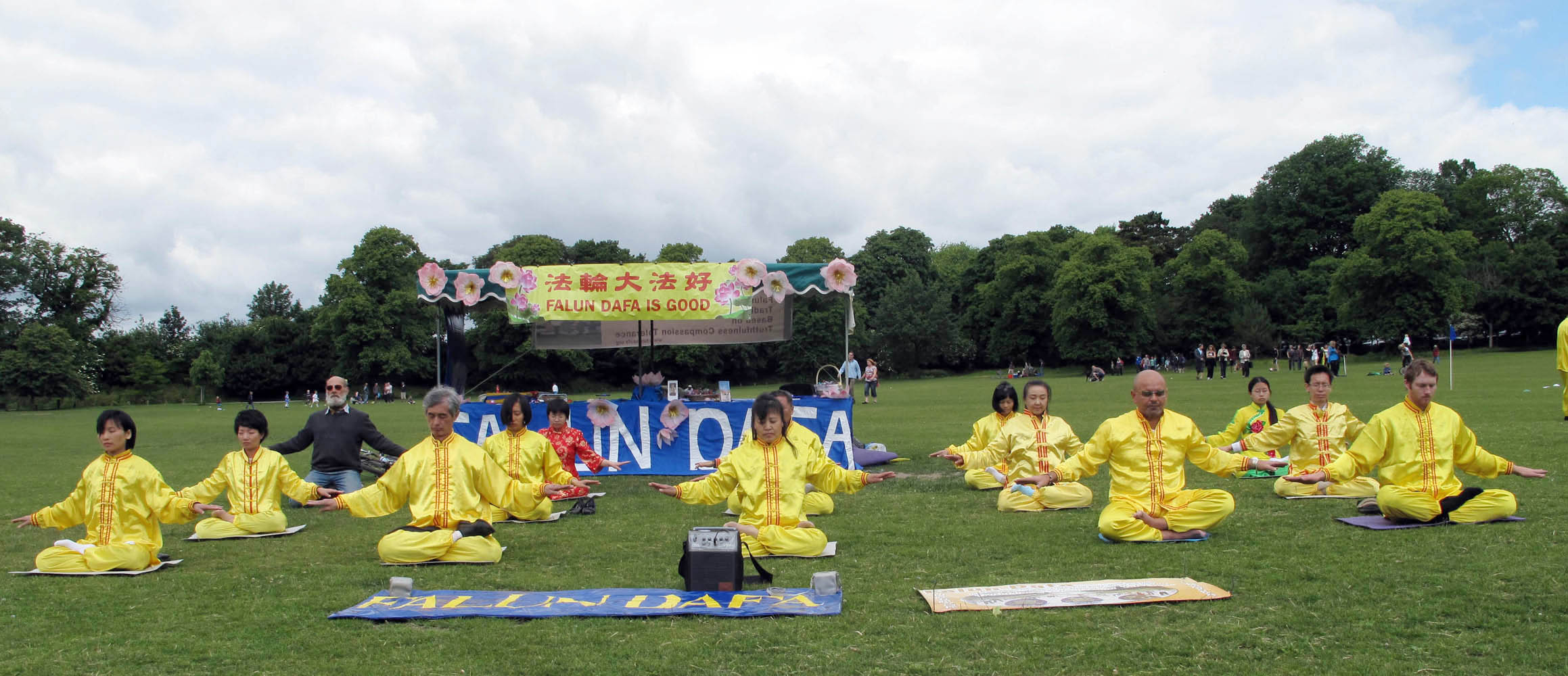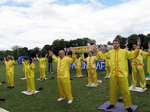![]() 法轮功学员们在布莱顿-赫维国际体育节上展示法轮功功法 |