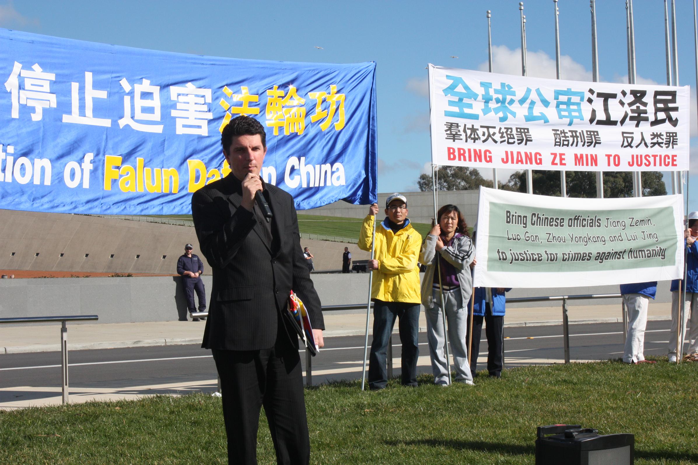 澳洲绿党联邦参议员卢得兰姆(Scott Ludlam)首先做了发言。他在发言中谈到:“有人认为中澳两国关系很重要,当然是重要。但是今天在这里我们要提醒中国政府和澳洲政府,贸易和投资不是一切,贸易和投资也不是最重要的,有些东西比钱更重要。今天你们在座的许多人代表朋友、代表家庭、代表已经逝去的人们来到这里。鉴于中国当局对人们进行系统迫害的种种行动,我们在此提醒他们人权和生命尊严的重要性,它比贸易更重要,比投资更重要。”