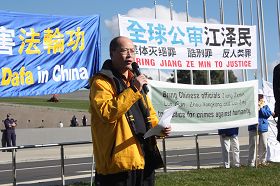 原航天部工程师,现年七十多岁的北京法轮功学员岳昌智女士在集会上发言时表示:“我的亲身经历就是最好的见证,我在中国曾因两次为法轮功鸣冤上访,数次被非法抓捕、四次被非法关押,经受了酷刑折磨,九死一生。在中国大陆还有无数象我这样的法轮功学员,他们还被关押在监狱、劳教所经受苦难,必须坚决要求中共立即停止对法轮功的迫害。”