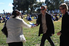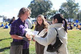 澳洲人亚力山大(Alexander Merae)坐在法轮功学员之中一直到整个活动结束,当记者询问他为何来这里,他非常感慨地说:“前几年,当我得知法轮功被如此迫害而坚持不懈以和平方式讲真相时,我就想一定要去坐在他们的中间去支持和感受他们。我等这一天已等了近两年了。我一直在关注和寻找机会能来参与和帮助。今天我很激动我能如愿来和法轮功学员坐在一起,我希望我能帮他们祈祷,我能联系三个教堂来一起为他们祈祷。”他最后留下了联系方法,希望一直能得到法轮功的最新消息。