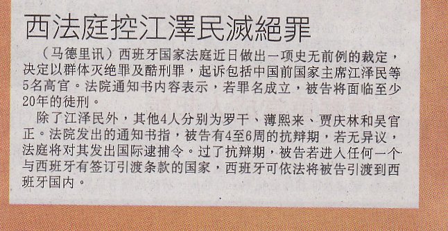 (详细内容:法广:西班牙法庭向江泽民下传票)