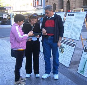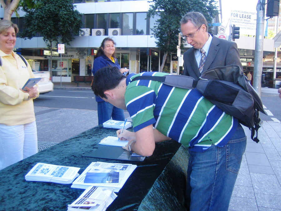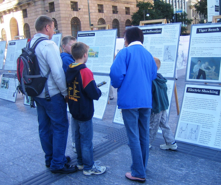 利伯曼(Johann Lipman)和朱维尔(Margaret Duval)是布里斯本当地的居民,他们一致认为中共对无辜的法轮功学员进行迫害是十分错误的,并表示非常支持学员举办的反迫害活动。来自意大利的尼克拉斯(Nicolas)曾听说过中国存在集中营,但酷刑手段如此残酷是他没想到的,相当的震惊。