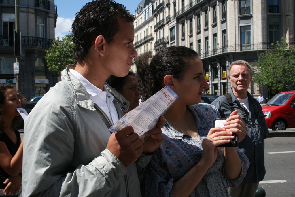 下午一点开始的大集会在布鲁塞尔市中心(证券交易所前空地)最繁华路段进行。集会中,比利时法轮大法学会负责人尼古拉斯先生宣读了来自欧洲议会副主席等政要支持法轮功、反对迫害的信函,他们对此次活动表示了关心和支持。国际大赦中国问题的负责人多米尼克女士也到场发言。