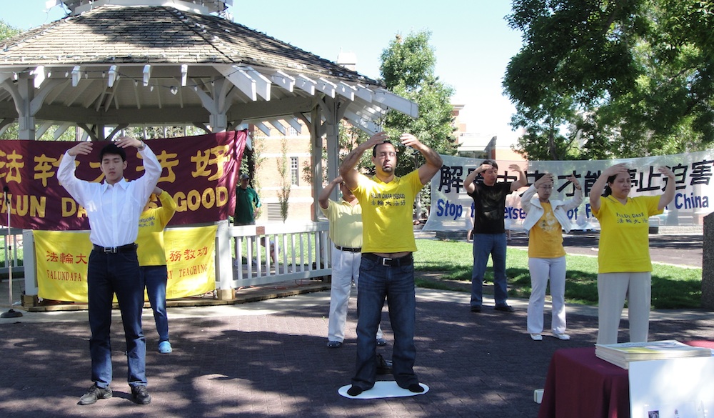 ![]() 法轮功学员展示法轮功功法 |