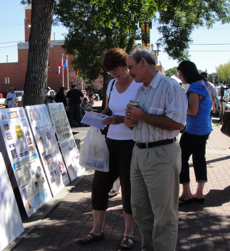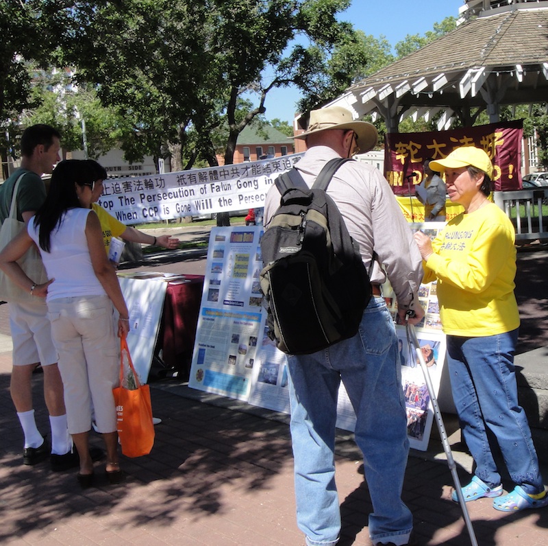 集会结束后,法轮功学员继续展示法轮功功法,并向来往于农贸市场的民众讲真相,来了解真相的人络绎不绝。一个刚从上海回到埃德蒙顿一周的西人,看到法轮功的展板后说,在中国听说法轮功如何如何。当他了解到那都是中共为了迫害法轮功、打击“真、善、忍”而编造的谎言时,他深有感触的说,在中国,很多事情都是一言堂,甚至连他这个在上海一所幼儿园教英文的老师都被时时告知“教你的书,不要管别的闲事”。他说今天的中国在中共的精神钳制下,是地地道道的拜金主义盛行,一切向钱看,全无道德可言。