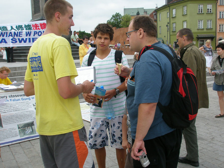 还有些来波兰旅游的美国人、加拿大人、日本人等其它国家的人说,他们已经在自己国家就知道法轮功真相了,更相信制止迫害的那一天不会远了。