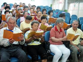 ![]() 每周日下午可以比学比修的学法组,是这群老年法轮功学员共同的期待 |