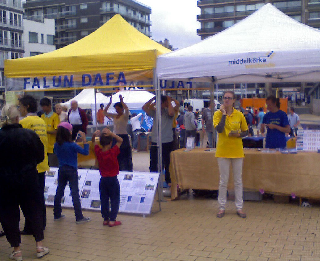 ![]() 比利时法轮功学员在国际集市上弘法 |