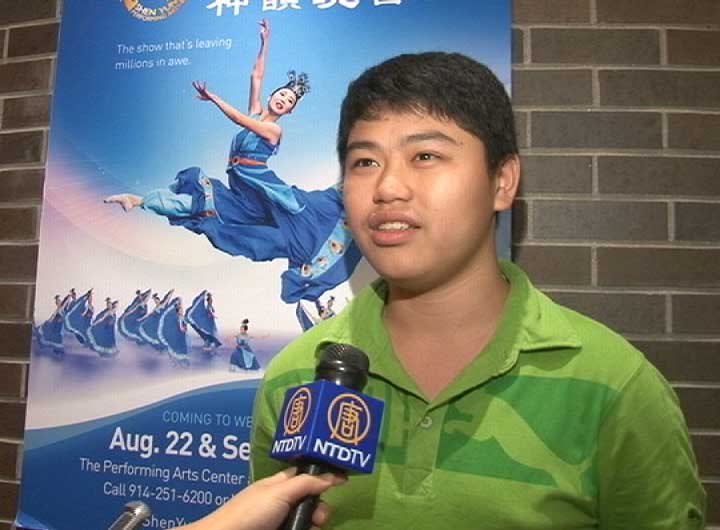 不久前抵达纽约第一次看神韵演出的十六岁黎姓少年很高兴能看到这么好的演出,他说,看完之后很感触人的心里,觉得很振奋。尤其是第一个节目“先皇开盛世”,开头那个音乐,一放出来就使人很振奋,有触电的感觉。