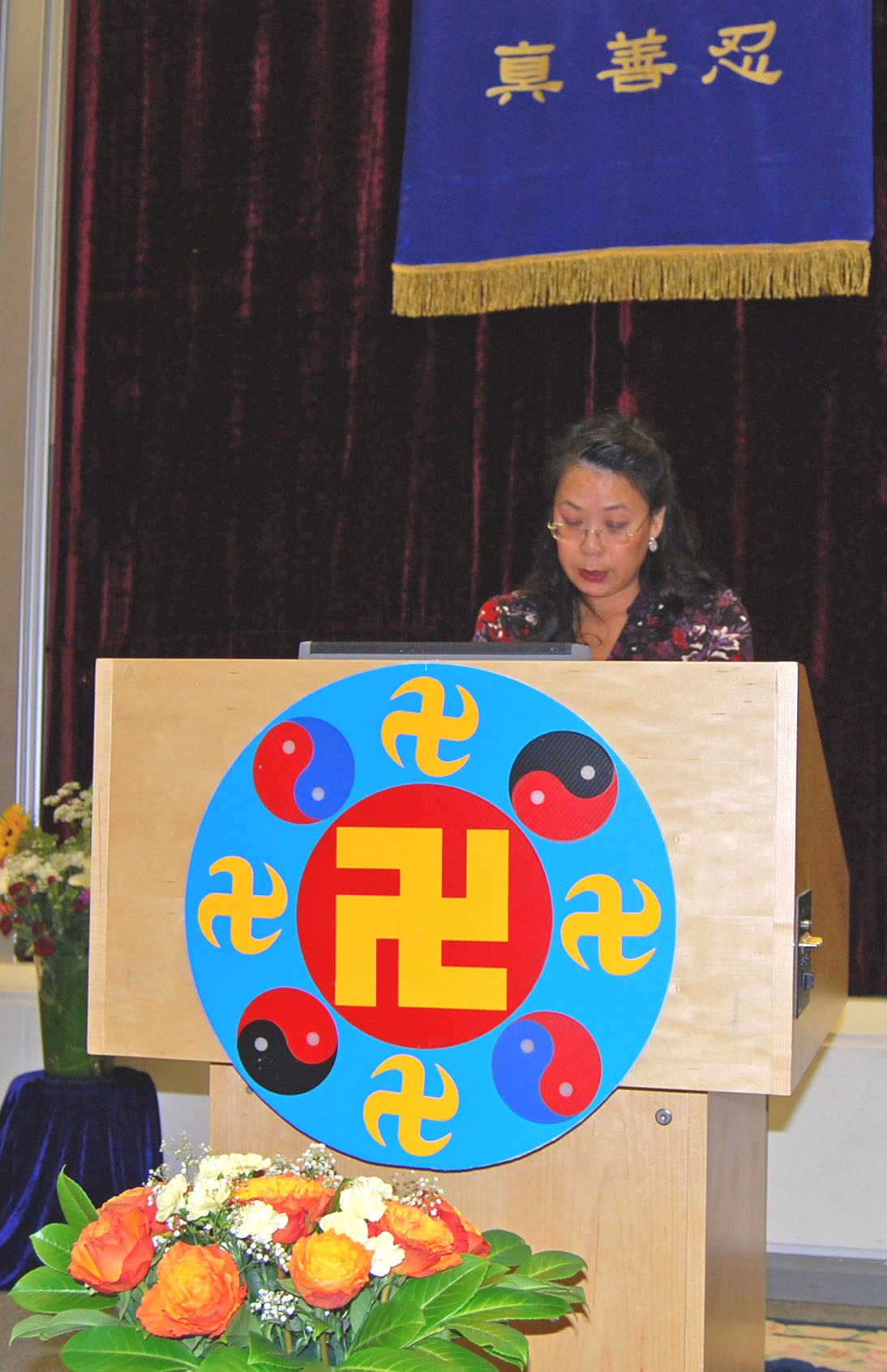 一位老年大法弟子在法会上谈了她在唐人街讲真相、劝三退的过程中,心性不断得到提高,用正念和慈悲对待形形色色的人的修炼体会。她说道:“经过几年在唐人街讲真相、劝三退,现在,不管遇到什么样的人、说什么,我都不会放在心上,心里很坦然,心态也稳定了。不管别人说我什么,我都不会在乎,只是一心一意的去救他们,为了他们生命的未来好。”在这样的心态下,有的人以前拒绝听真相,包括大陆的公安人员,后来也听了真相,做了三退。