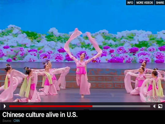 八月二十七日晚六点,CNN国际新闻台报导了神韵纽约艺术团在美国首都华盛顿肯尼迪中心的演出。(电视网络截图)
