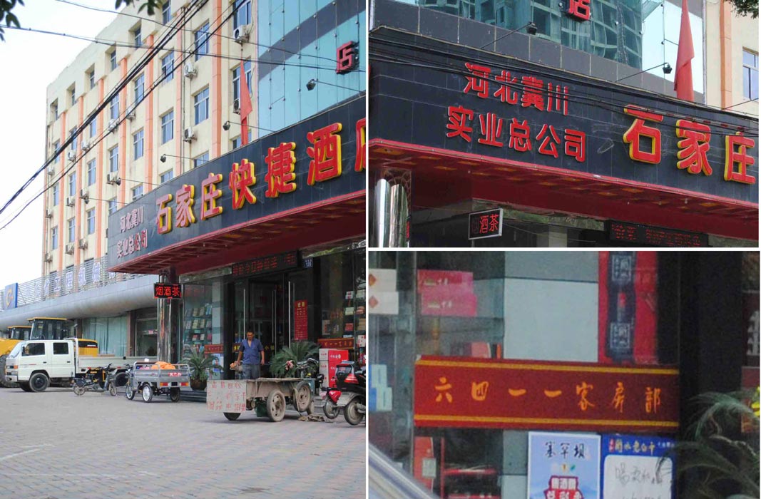 ![]() 位于石家庄联盟路689号的新华分局(非法抓捕闫女士的主要责任人)左下角为门牌放大 | ![]() 非法抓捕闫女士的直接责任人:石家庄宁安路派出所(右侧为放大牌匾) | ![]() 迫害责任方:东焦街道办事处 | ![]() 新华区610“学习班“地址:河北冀川总公司招待所(6411客房部) |