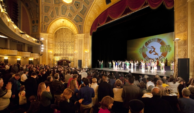 ![]() 二零一一年一月二十三日神韵巡回艺术团在美国底特律歌剧院举行的第五场也是压轴场演出高朋满座。演出结束时全场起立鼓掌,与神韵演员挥手道别,祝愿明年再见。 |