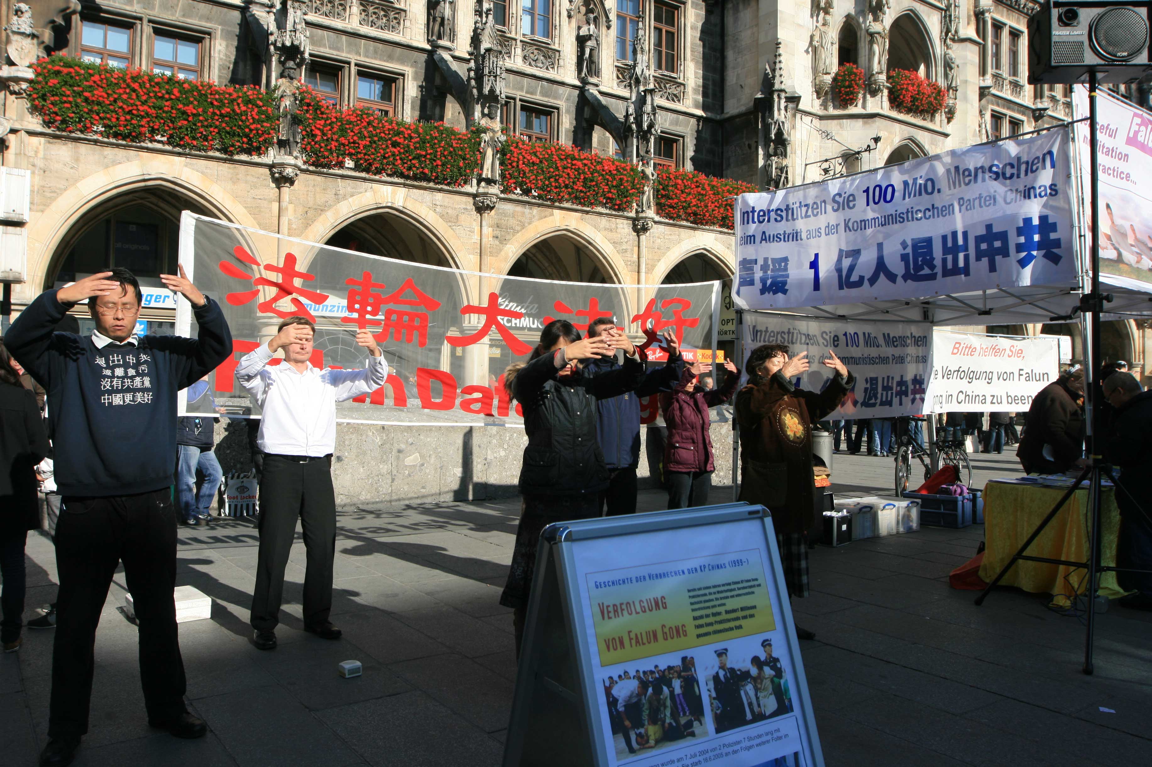 ![]() 慕尼黑法轮功学员举办声援一亿四百万人退出中共活动,并告诉人们法轮功真相。 |