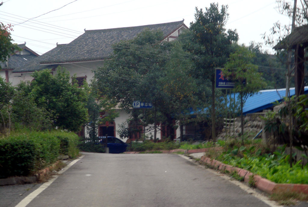 ![]() 堡坎下面的房子(该房子地下室就是关押大法弟子的洗脑班) | ![]() 马路边的指路牌 |
