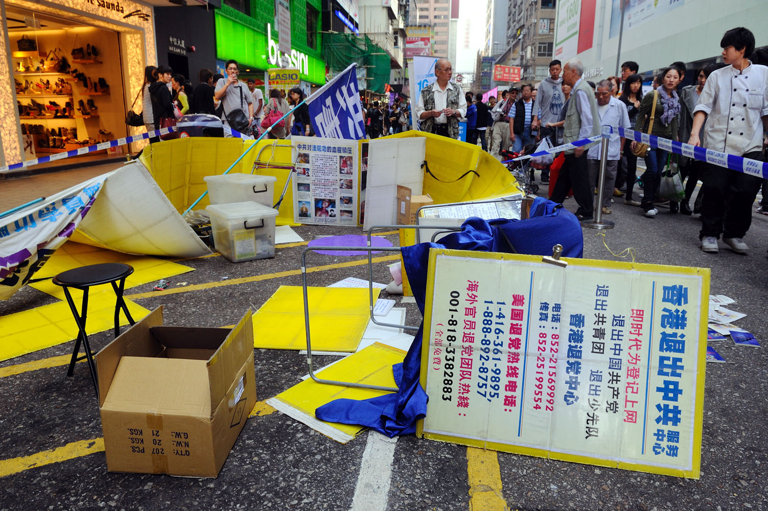 ![]() 旺角西洋菜街的法轮功真相点十三日下午遭凶徒恶意破坏 |