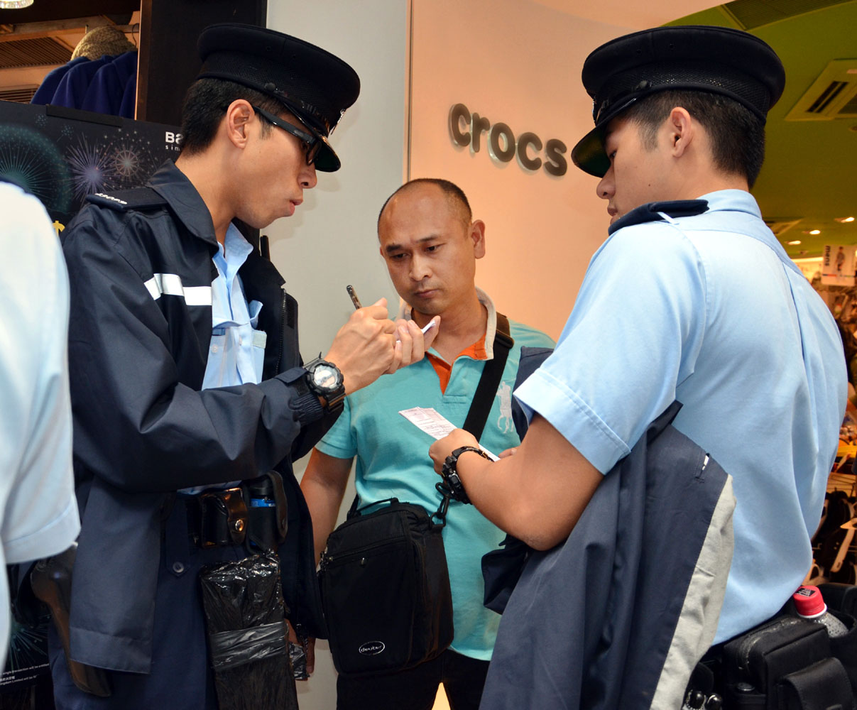 据第一宗袭击案的目击者法轮功学员叶小姐称,中午时分,一个年龄大约三四十岁、穿迷彩服的男子走过来,把展板全踢倒了,桌子也弄翻了,还用胸口撞法轮功学员洪先生。另一位学员见状报警,警员及时赶到并制止暴徒。其人态度非常嚣张,以广东话破口大骂,警方查出此人是中国籍男子。