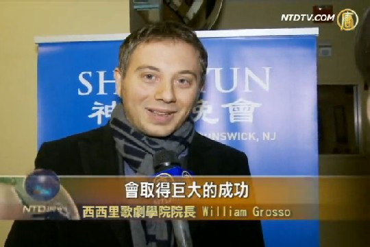 十月二十八日晚,美国神韵纽约艺术团在新泽西州新布朗斯维克市(New Brunswick)州立剧院(State Theatre)上演的经典节目专场满场。专程从意大利飞到纽约向参加全球华人声乐大赛选手颁发奖学金的西西里歌剧学院院长格罗索(William Grosso)也前来观看了演出。他认为神韵演出完美无缺。