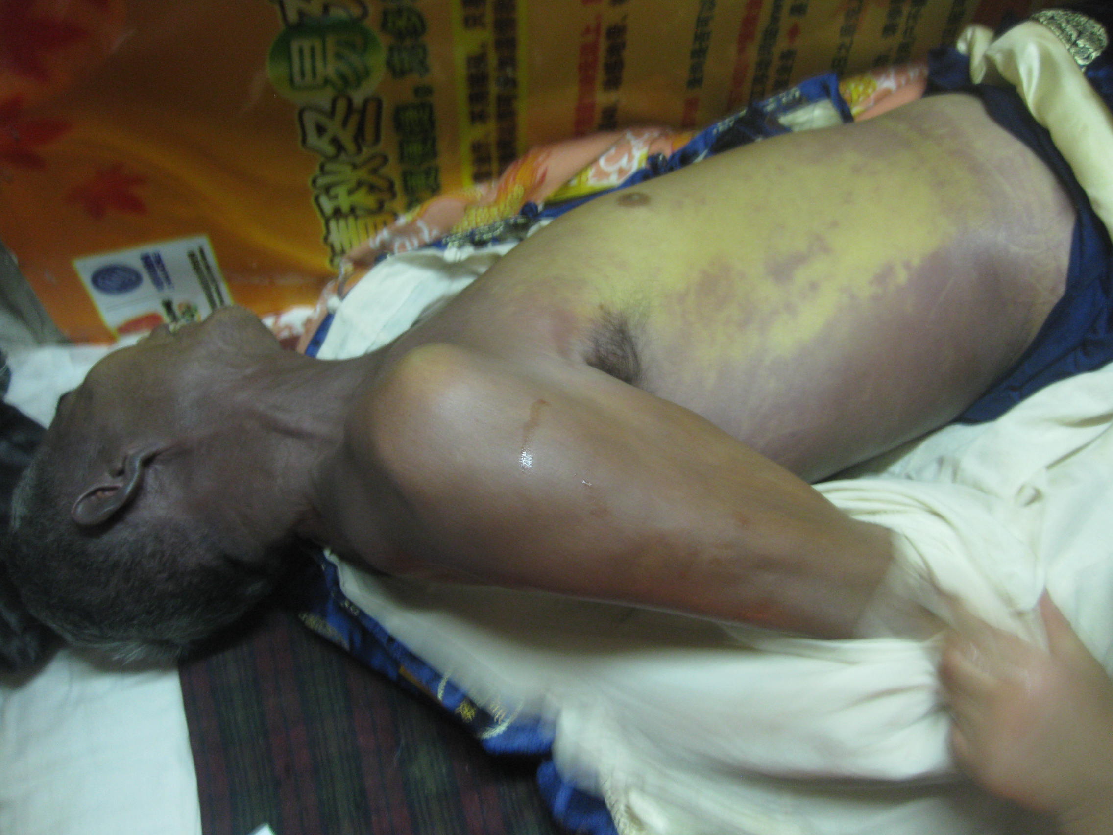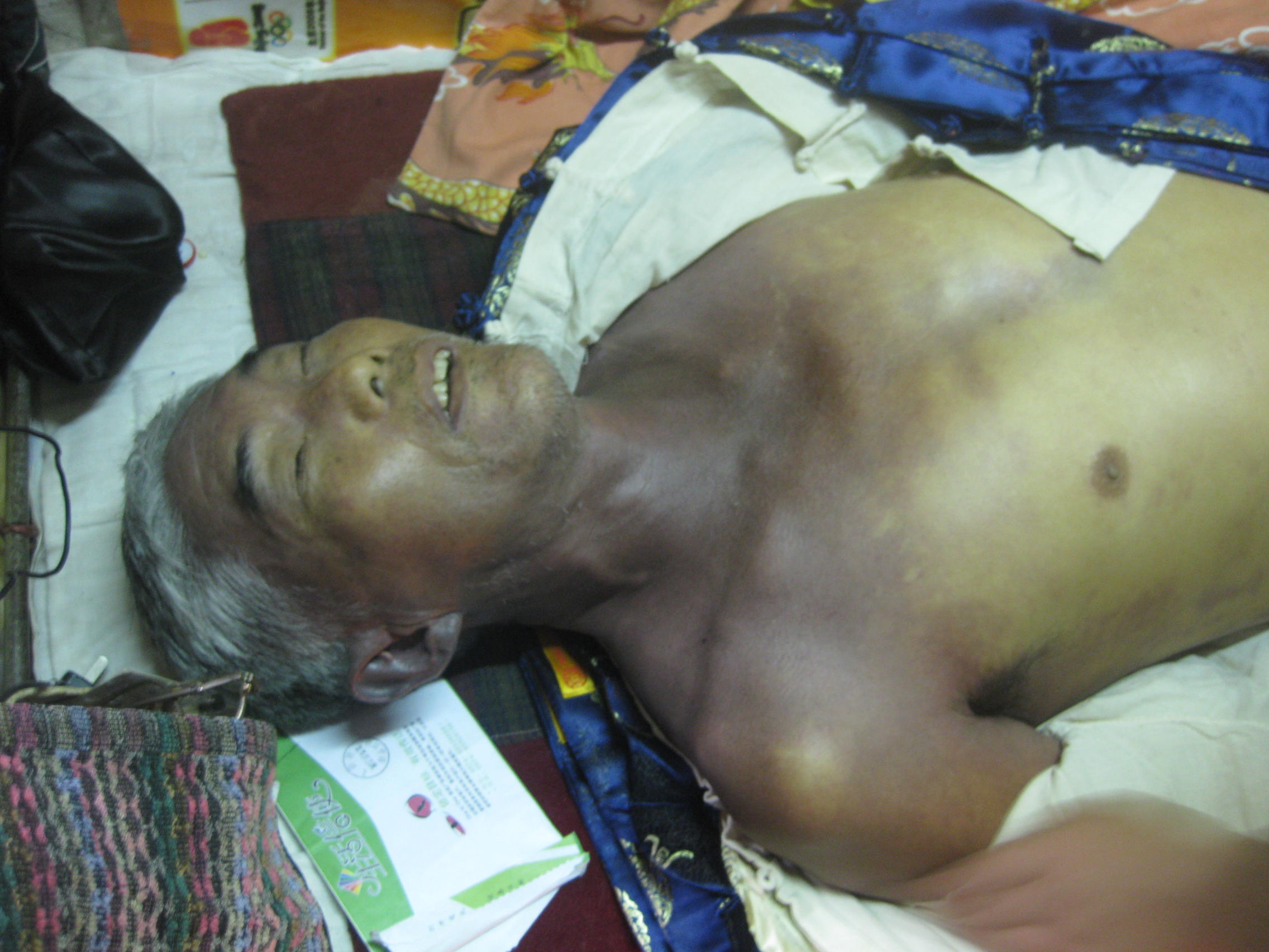 二零一一年十月十七号,李育君被宁海六一零带去,关入洗脑班进行迫害十一天。没想到的是,她刚回家,她的哥哥却又被带走,不到四天的时间,一个生龙活虎的人被折磨致死。他九十四岁的老母亲因为儿子这样被迫害离世,悲愤交加,现在脑子变得时而清醒,里面糊涂。