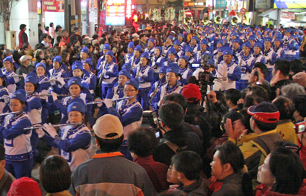 【明慧网二零一一年二月十四日】由法轮功修炼者组成的腰鼓队与天国乐团,二零一一年二月十二日晚间应邀参加台湾苗栗传统客家大节庆“火旁龙踩街”表演,亮丽的服装与壮观的队伍让民众纷纷鼓掌叫好、举着相机拍个不停。