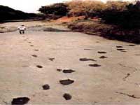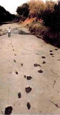 河床中发现的白垩纪恐龙脚印与人的脚印交错而行