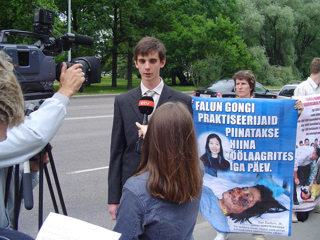 不只民众声援反迫害,法轮功学员持续揭露迫害真相,也得到爱沙尼亚媒体的关注。二零零五年七月二十五日,法轮功学员在中共驻爱沙尼亚首都塔林的使馆前举行活动,抗议中共对法轮功的残酷迫害。当地媒体现场采访了法轮功学员,并于晚间报导了这次活动。