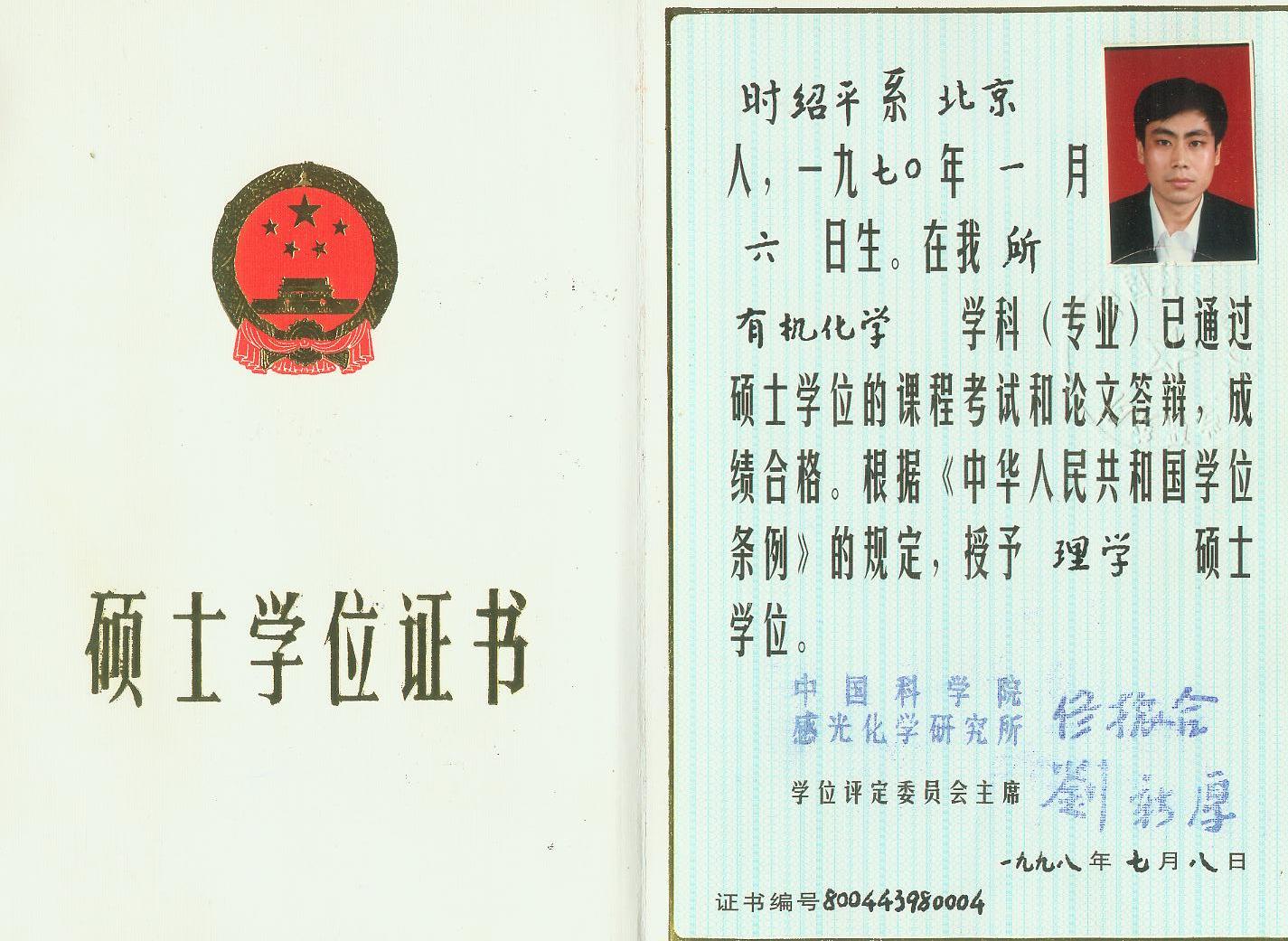 ![]() 时绍平 | ![]() 时绍平的硕士学位证书 |